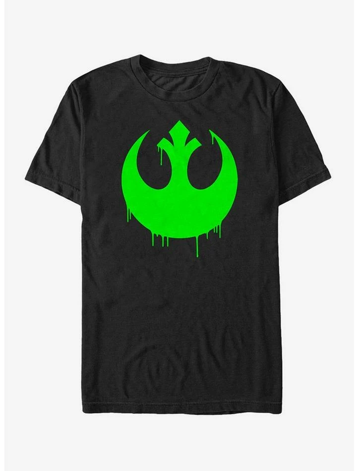 Even the rebels love Halloween and are trying a new look with the Star Wars Halloween Rebel Logo Drip Men’s T-Shirt. A green Alliance Starbird is featured in a drip style on this fun Halloween Star Wars shirt.