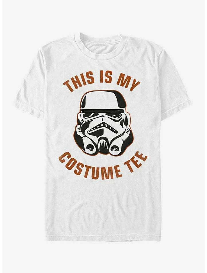 Oh no! Is that a ghost? It’s just the Star Wars Halloween This is My Stormtrooper Costume Men’s T-Shirt. A Stormtrooper’s helmet is encircled by “This is My Costume Tee” on the front of this cool Star Wars tee.