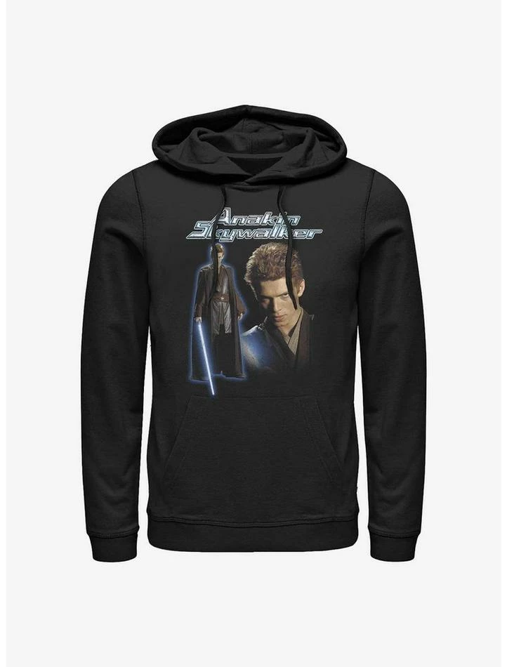 Rep the Chosen One with this pullover Star Wars hoodie. It features the dude who eventually becomes Darth Vader — Anakin Skywalker in Episode II: Attack of the Clones — holding a lightsaber.