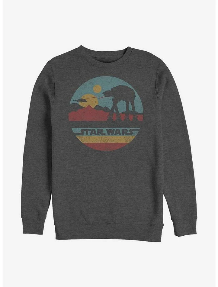 Your other ride is an AT-AT walker. This heathered charcoal grey Star Wars sweatshirt features the giant vehicle roaming the ice planet Hoth.