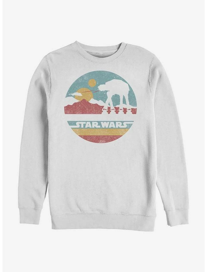 Your other ride is an AT-AT walker. This white Star Wars sweatshirt features the giant vehicle roaming the ice planet Hoth.
