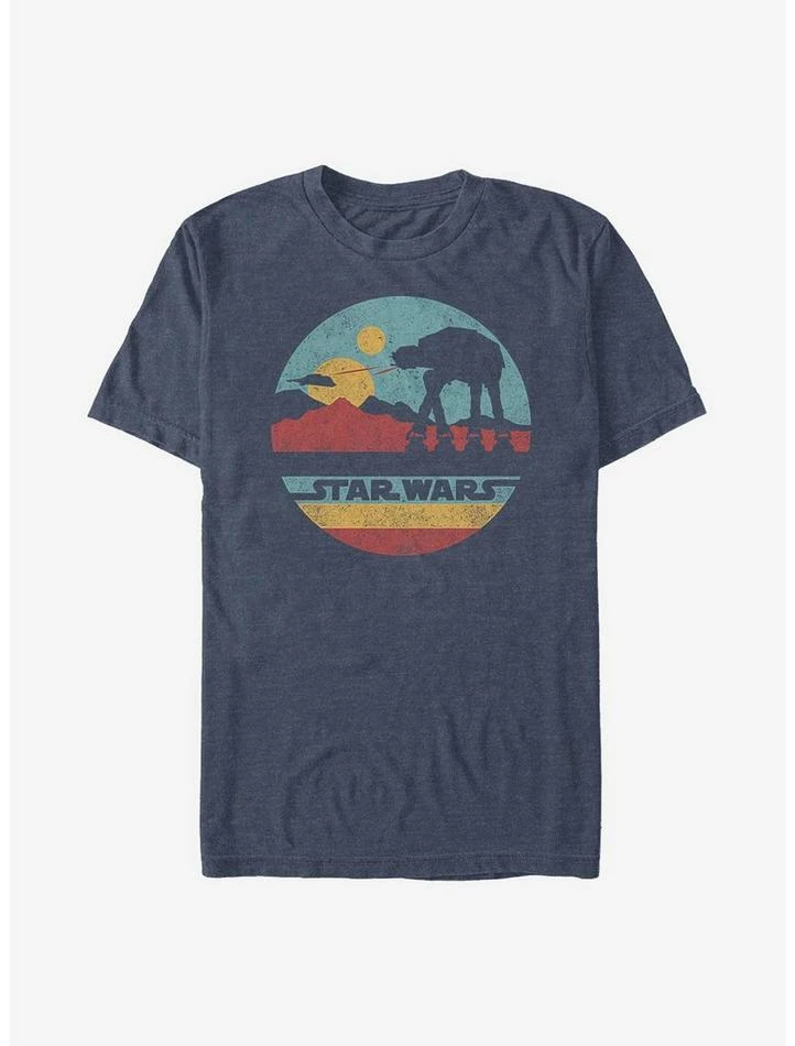 Your other ride is an AT-AT walker. This heathered navy blue Star Wars tee features the giant vehicle roaming the ice planet Hoth.