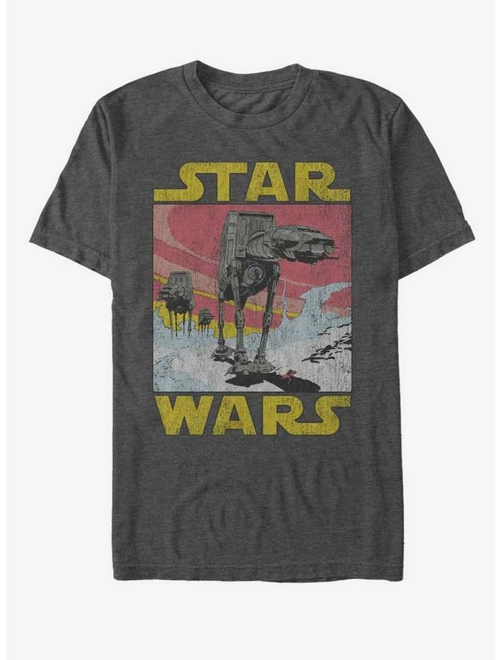 The Star Wars AT-AT Scene Heather Charcoal T-Shirt is where it’s AT! If you’re all about the All Terrain Armored Transport then we have the shirt for you! This cool gray AT-AT shirt shows AT-ATs walking across an alien terrain. 60% Cotton, 40% Polyester.