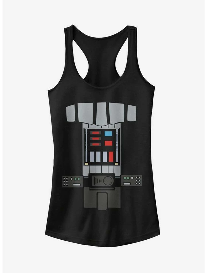 Give your outfit that menacing Sith appeal that can only be captured by wearing this black racerback tank top! This awesome black Star Wars top features a print in front that mimics the style of Darth Vader’s infamous armor/life support system.
