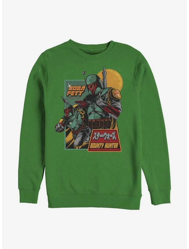 Before The Mandalorian came along — there was *this* Mandalorian! Our kelly green crewneck Star Wars sweatshirt features OG bounty hunter Boba Fett.