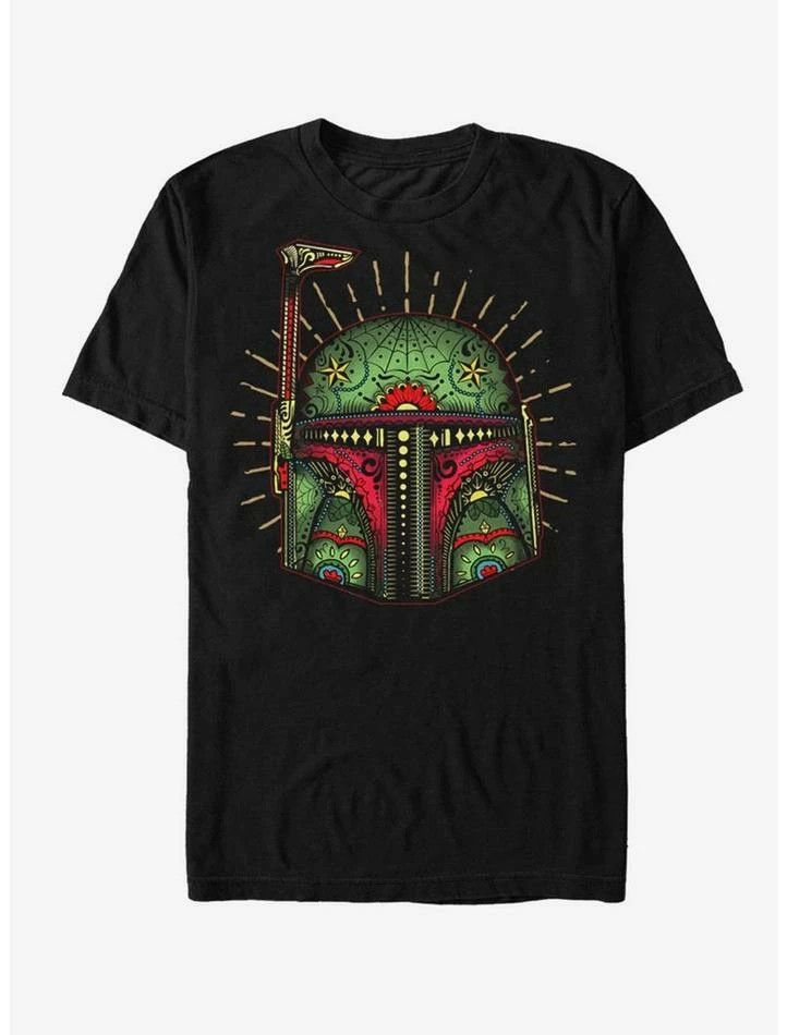 But how about on the Day of the Dead?! This black Star Wars tee features iconic bounty hunter Boba Fett’s helmet done up like a sugar skull.