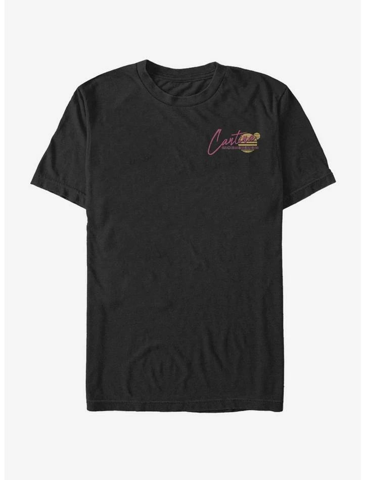 One blue milk, comin’ right up! This lightweight black Star Wars tee features a distressed chest hit for the Mos Eisley Cantina — the infamous watering hole on Tatooine.