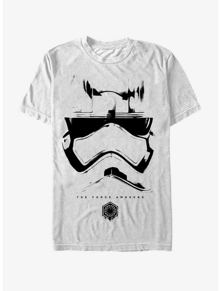Join an elite corps of Stormtroopers under General Hux’s command with the Star Wars Captain Phasma Helmet White T-Shirt. A black print on the front of this cool white Star Wars Episode 7 T-shirt features the details of Captain Phasma’s helmet with the First Order emblem below. 100% Cotton.