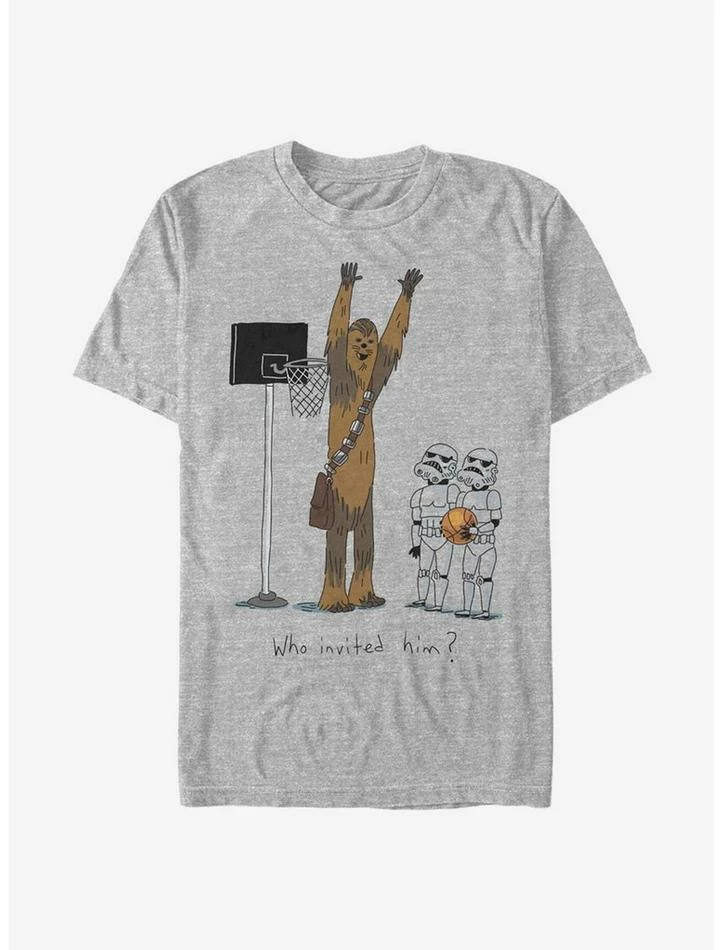This heathered tee features noted Star Wars tall dude Chewbacca shooting hoops with some Stormtroopers. Team Chewbacca… just sayin’.