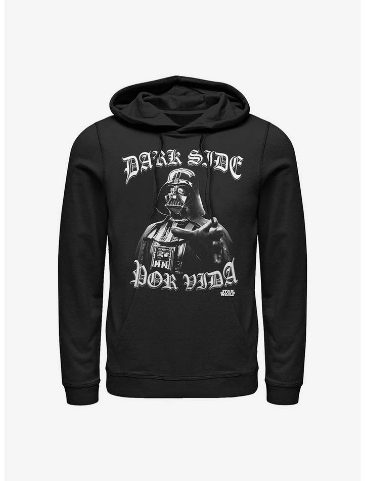 Devote your life to the Sith ways and the Galactic Empire with this pullover Star Wars hoodie. Darth Vader reaches forward on the front of this black hooded sweatshirt with “Dark Side Por Vida” printed around him.