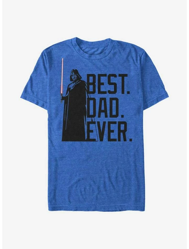This Sith Lord better not hear you say your dad is better than him! Darth Vader stands with his lightsaber alongside “Best. Dad. Ever.” in bold black down the front of this funny heathered royal blue Star Wars shirt. Perfect for Father’s Day, or any other day you wanna celebrate your awesome dad.