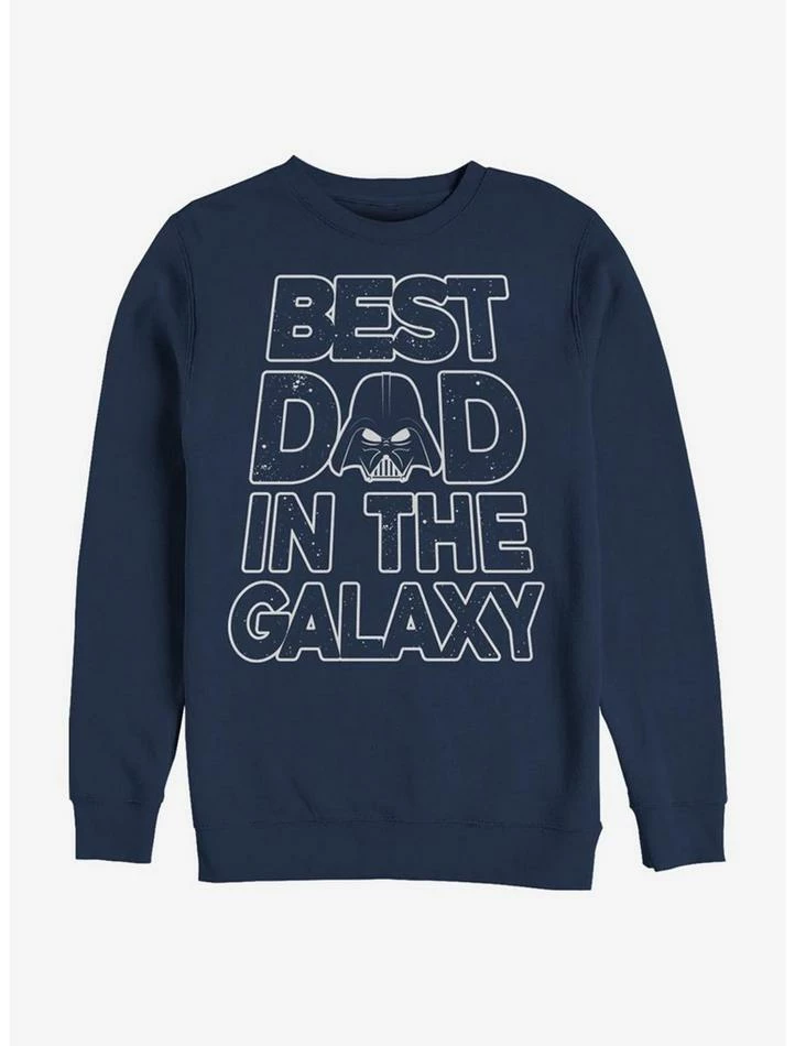 Good thing you have the best dad in the galaxy — ’cause Luke Skywalker certainly doesn’t! This navy blue crewneck Star Wars sweatshirt celebrates all the dads with its Darth Vader helmet-accented design.