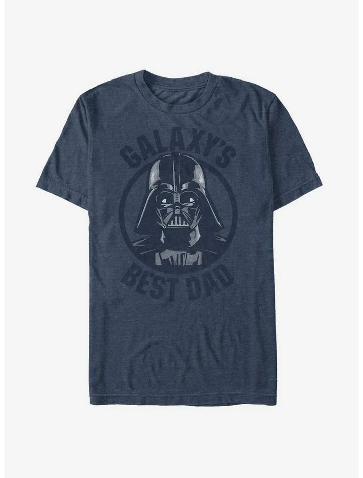 Dads from both the Dark Side and the Light will love the Star Wars Darth Vader Galaxy’s Best Dad Heather Navy Blue T-Shirt! A dark print of Darth Vader is featured next to “Galaxy’s Best Dad” on the front of this funny Star Wars shirt. 60% Cotton, 40% Polyester.