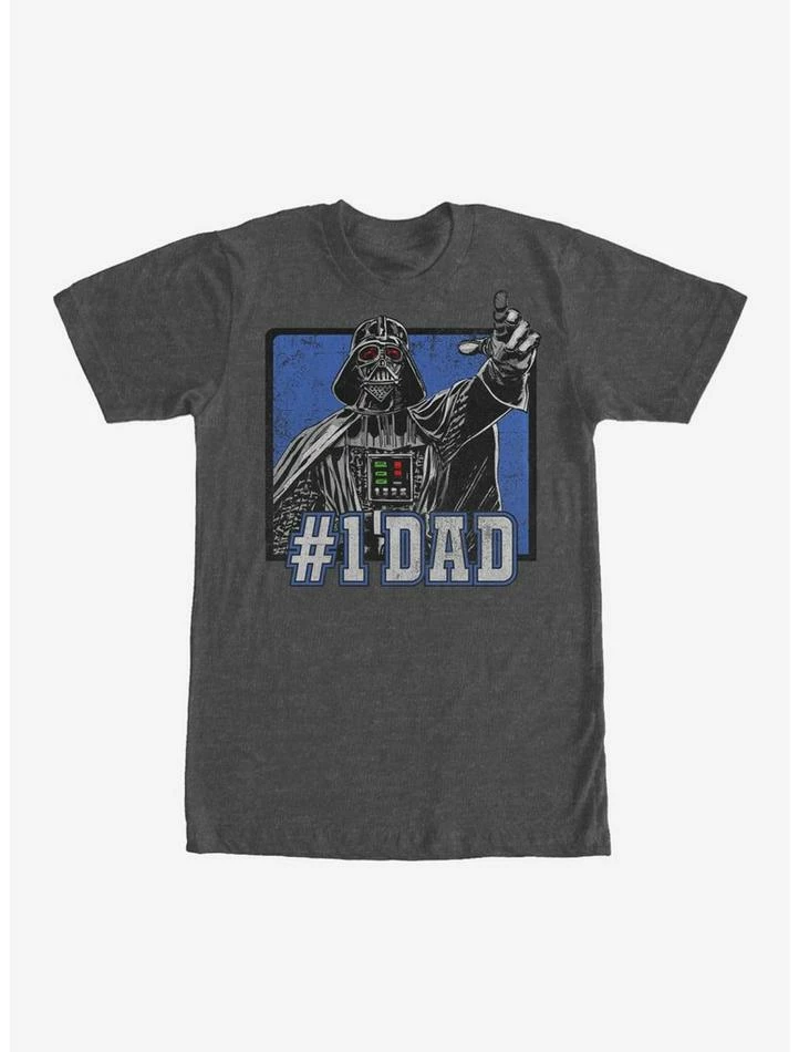 A long time ago in a galaxy far, far away, all the best dads started rocking the Star Wars Darth Vader Number One Father Heather Charcoal T-Shirt! This Star Wars graphic tee reads “#1 Dad” in slightly distressed print below Darth Vader. 60% Cotton, 40% Polyester.