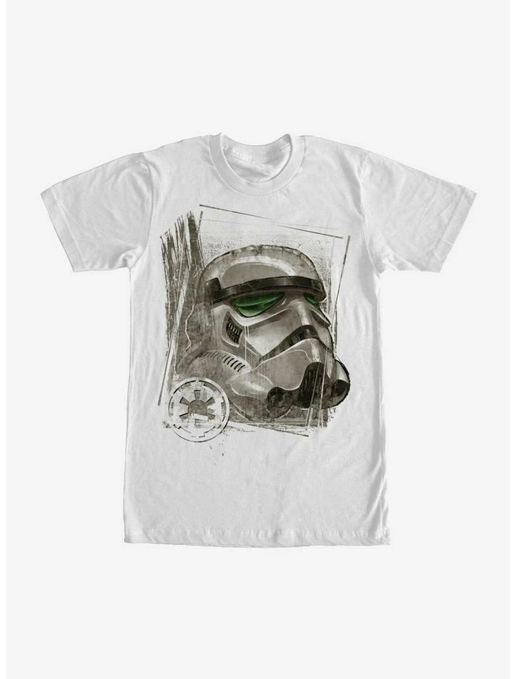 Use the power of the Star Wars Distressed Stormtrooper Helmet White T-Shirt to align yourself with the Galactic Empire. A stormtrooper helmet is printed in distressed style next to the Empire emblem on the front of this awesome white Star Wars shirt. 100% Cotton.
