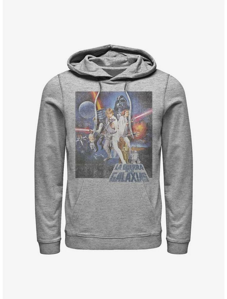 Star Wars is a worldwide phenomenon. This pullover hoodie is proof! It features vintage poster art for Episode IV of the Star Wars saga — La Guerra de las Galaxias.