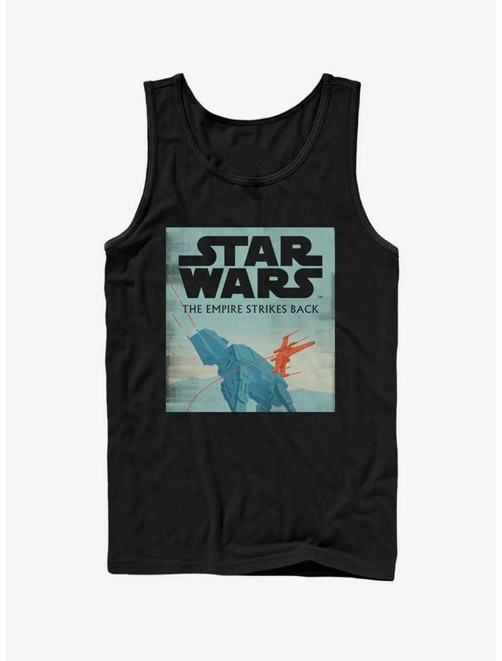 AT-AT vs. X-wing! This black tank top — inspired by Star Wars: Episode V – The Empire Strikes Back — features the iconic combat vehicle and starfighter in a minimalist design.
