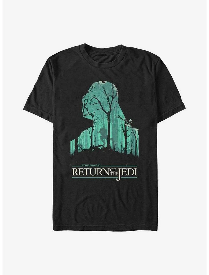 Join the battle on the forest moon of Endor with this T-shirt. Our unique black Star Wars shirt features a logo for Episode VI –Β Return of the JediΒ below an image of the woods of Endor forming the shape of Darth Vader’s helmet.Β