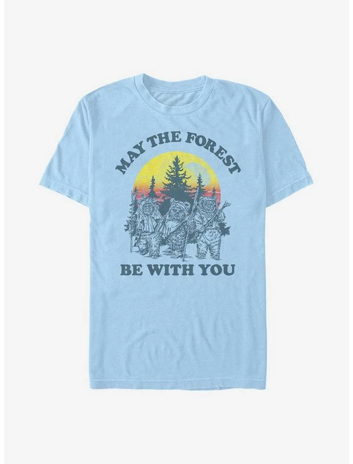 May the Force, and forest, be with you! This light blue Star Wars tee features those cute ‘n’ furry natives to the Moon of Endor — the Ewoks.