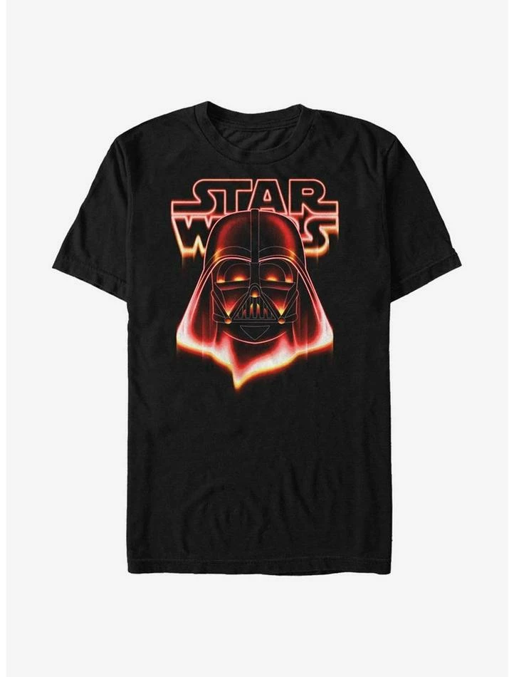 The Force is on fire. This lightweight black Star Wars tee features a sizzling film logo and Darth Vader helmet.