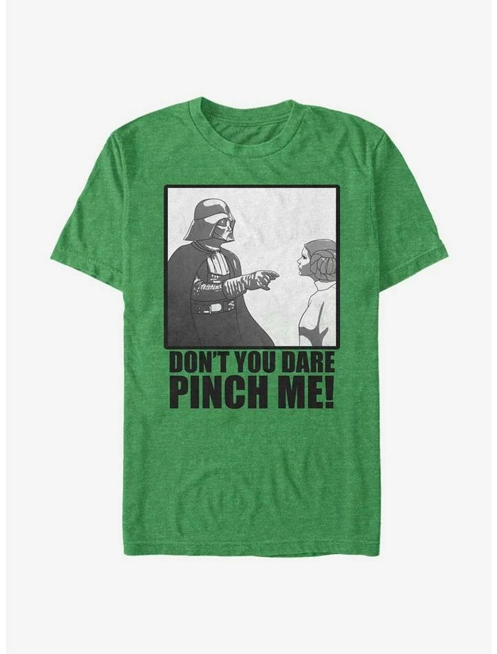 No green? No problem. When you’re a Sith Lord, that is! This lightweight kelly green Star Wars tee captures Darth Vader telling Princess Leia, “Don’t you dare pinch me!”