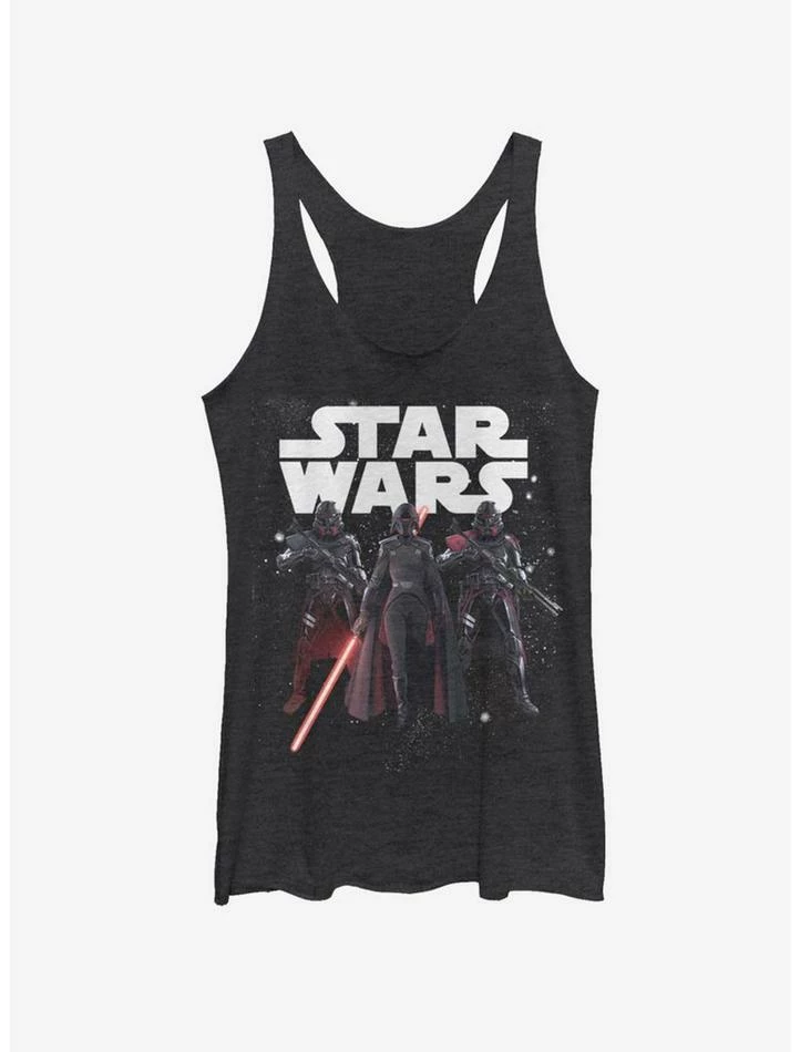 Jedi beware. This heather black racerback tank — inspired by Star Wars Jedi: Fallen Order — features the Second Sister flanked by Purge Troopers.