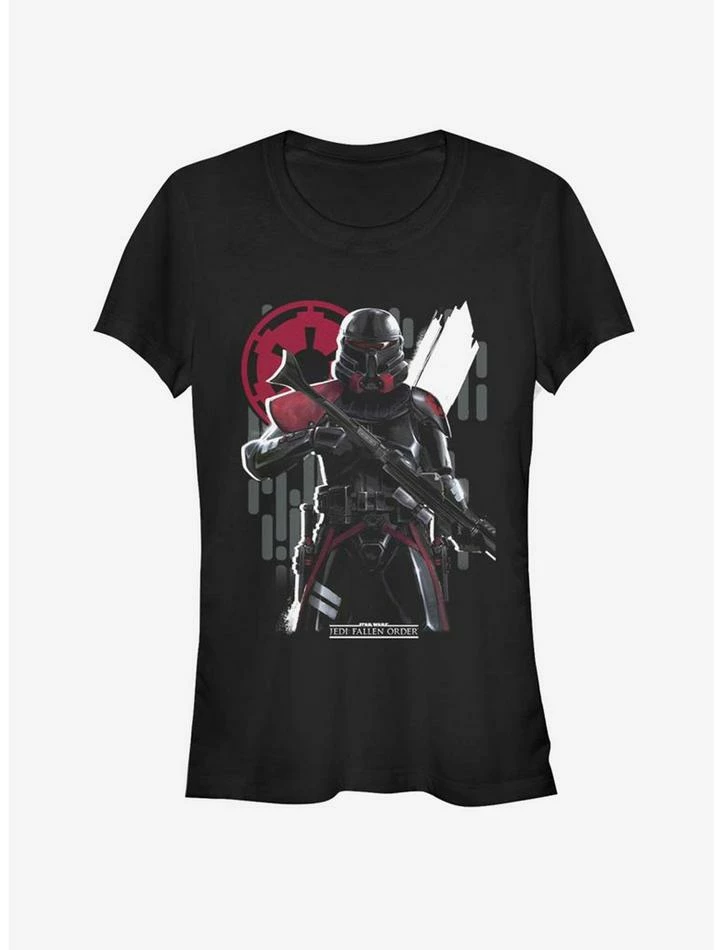 Hunt. Down. All. The Jedi. Knights. This fitted black tee — inspired by Star Wars Jedi: Fallen Order — features a Purge Trooper.