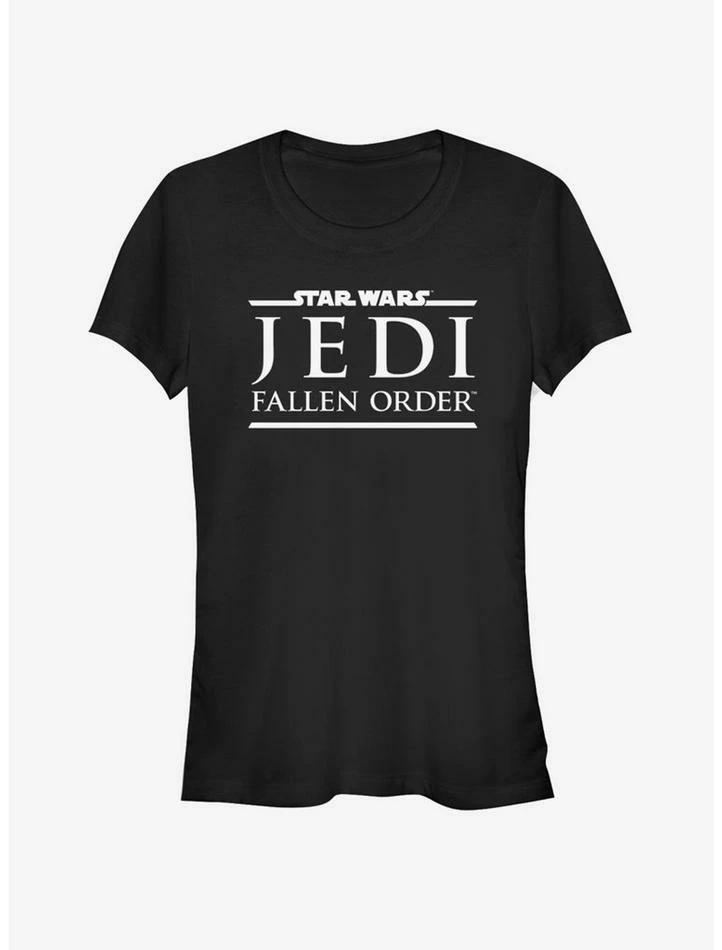 Your favorite gaming experience from a galaxy far, far away. This fitted black tee features a bold white logo for Star Wars Jedi: Fallen Order.