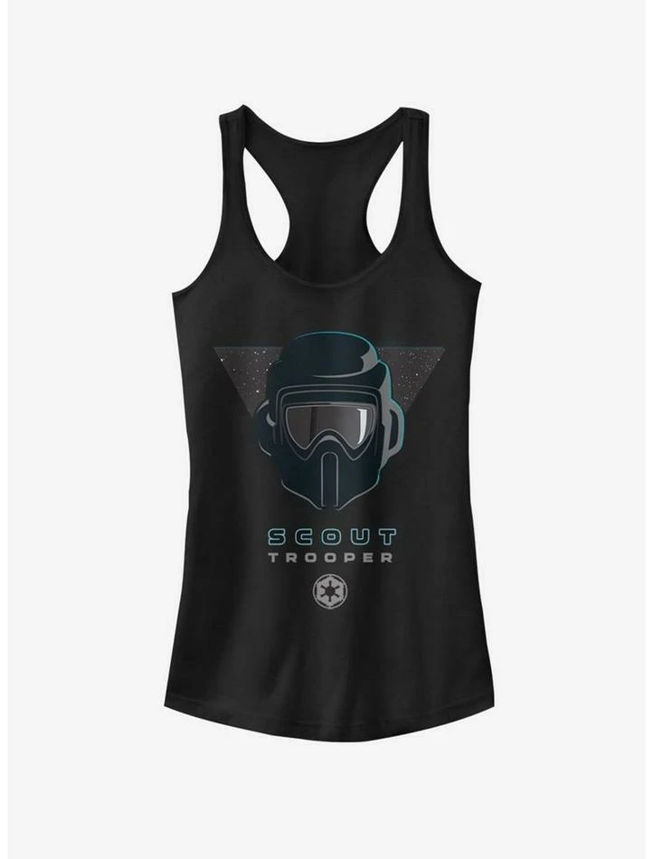 Rep the Galactic Empire’s specially trained Stormtroopers. This black racerback tank — inspired by the game Star Wars Jedi: Fallen Order — features a Scout Trooper.