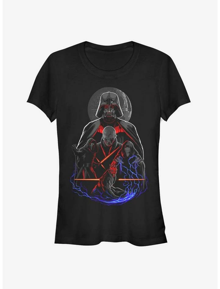 Darth Vader. Darth Maul. Emperor Palpatine. Supreme Leader Snoke. Kylo Ren. What do they all have in common? They’re all baaaad. And they’re also all featured on this fitted black Star Wars tee.