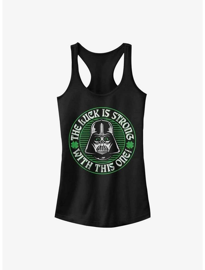 The luck is strong with this one! Darth Vader picks a couple of four-leaf clovers on this black racerback Star Wars tank.