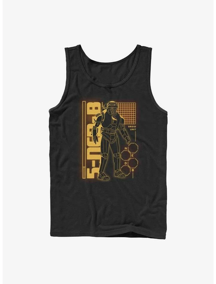 There’s a new, heroic droid in town! This black tank top — inspired by the Disney+ series Star Wars: Obi-Wan Kenobi — features loading droid 5-Ned-B.
