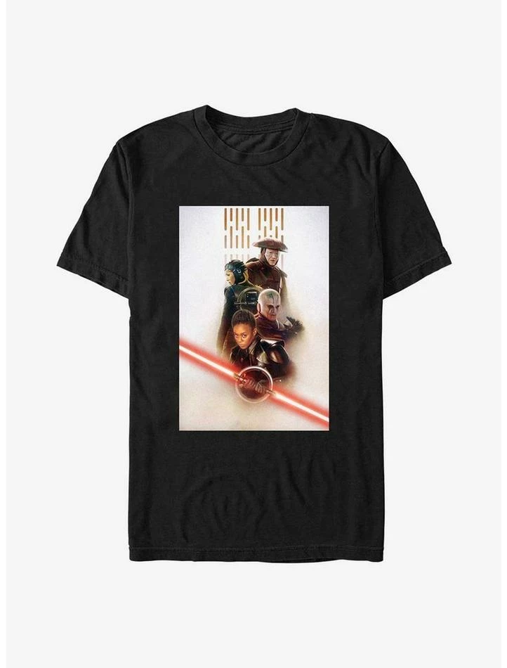You asked for more Inquisitorius, you got more Inquisitorius! This lightweight black graphic tee — inspired by the Disney+ series Star Wars: Obi-Wan Kenobi — features Fifth Brother, Fourth Sister, Imperial Grand Inquisitor, and Third Sister AKA Reva holding a dual-bladed lightsaber.