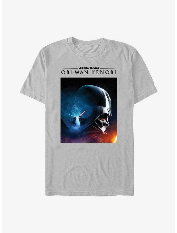 Commence heavy breathing! Darth Vader’s iconic helmet appears alongside an image from the Sith Lord’s lightsaber battle with Obi-Wan Kenobi on this lightweight silver tee inspired by the Disney+ series Star Wars: Obi-Wan Kenobi.