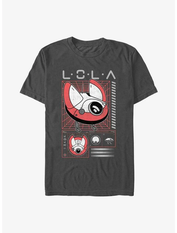 New. Favorite. Droid. L0-LA59 — or Lola for short! — appears as cute as ever on this lightweight charcoal grey graphic tee, inspired by the Disney+ series Star Wars: Obi-Wan Kenobi.