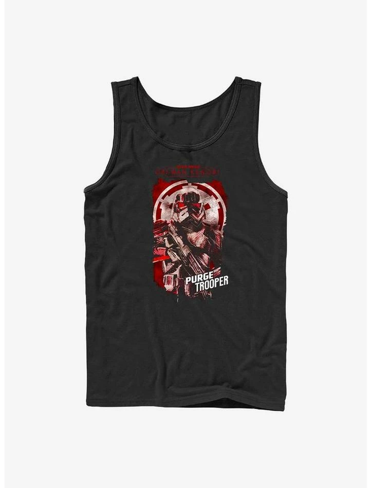 Hunt. All. The Jedi. This black tank top — inspired by the Disney+ series Star Wars: Obi-Wan Kenobi — features a fearsome, red-eyed Purge Trooper ready for action.