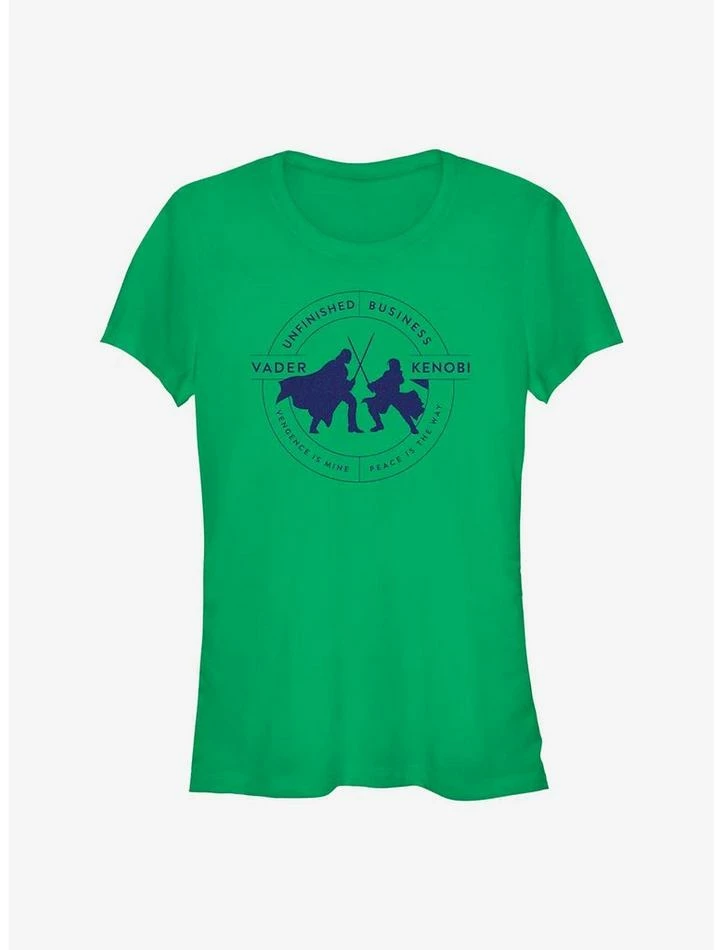 Unfinished business? You don’t say?! (Wink.) This fitted, lightweight kelly green tee — inspired by the Disney+ series Star Wars: Obi-Wan Kenobi — features dueling silhouettes of Darth Vader and Obi-Wan, along with their iconic catchphrases below: “Vengeance is mine” and “Peace is the way.”