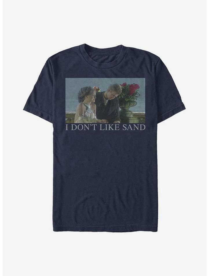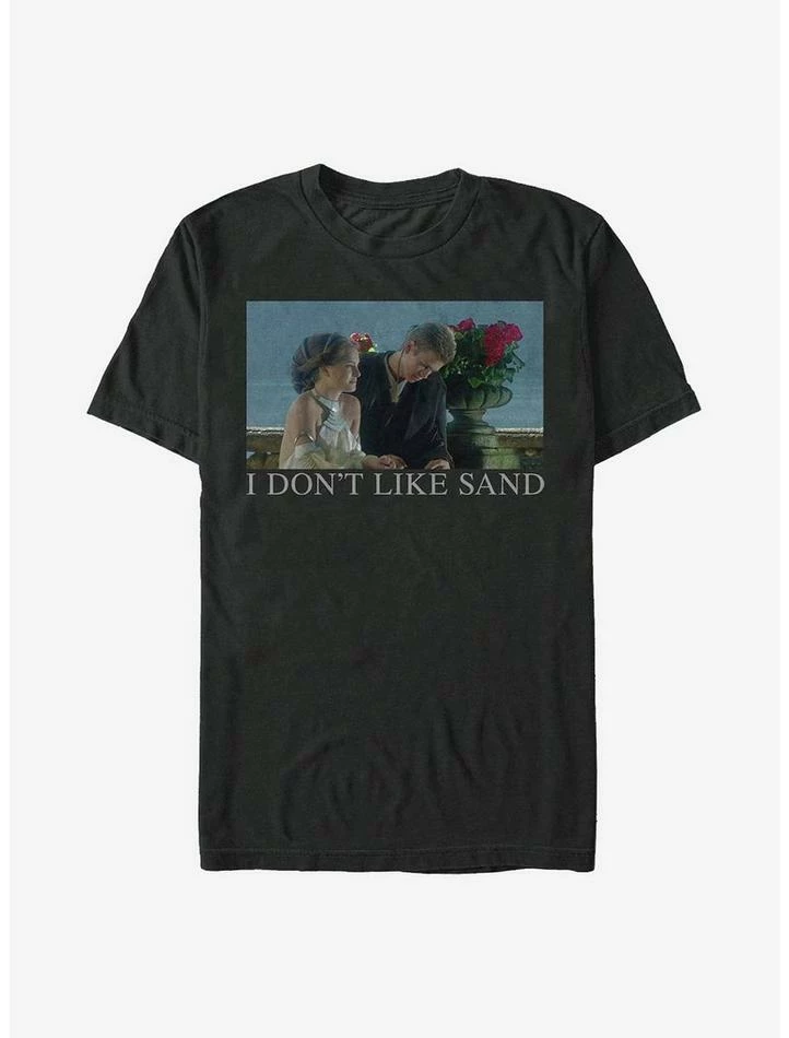 Sand. It’s coarse and rough and irritating and it gets everywhere. The classic speech Anakin Skywalker gave to PadmΓ© Amidala inΒ Episode II – Attack of the ClonesΒ — yep, the one that eventually became your favorite Star Wars meme — is now on the front of this lightweight tee.