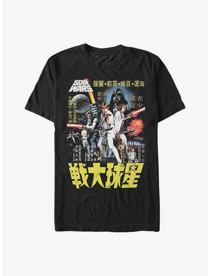 From a galaxy far, far away to countries all over the world — the Star Wars love lives on! This lightweight black graphic tee features international poster art from Episode IV – A New Hope.