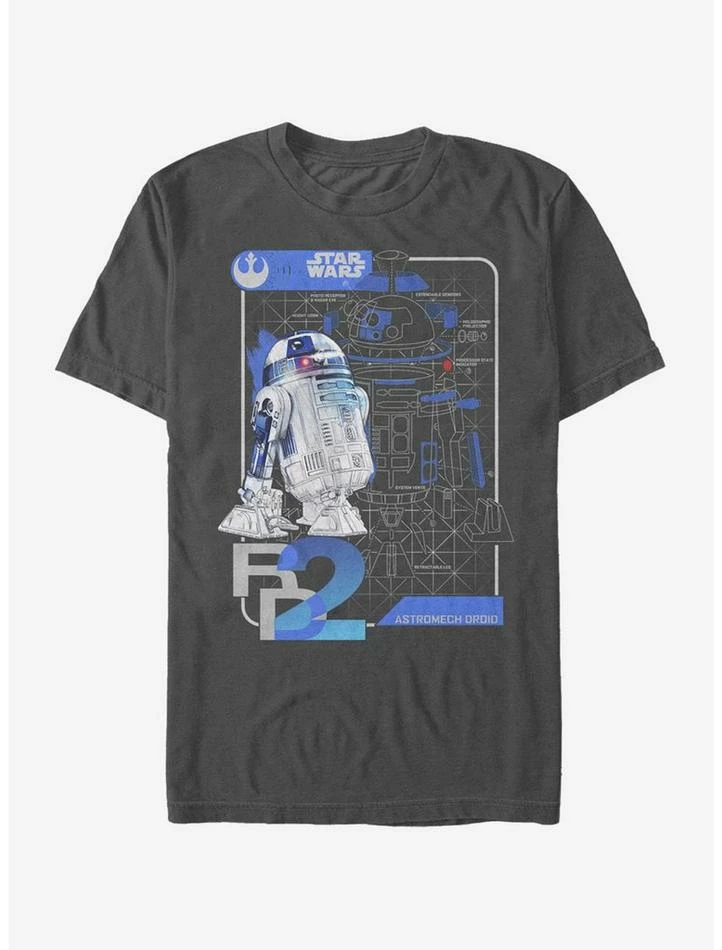 RD-D2 is not your typical astromech droid; there’s more to him than you think and you can see it all on the Star Wars The Last Jedi R2-D2 Schematics Charcoal Gray T-Shirt! Your favorite astromech droid, R2-D2, is shown in schematic detail on this cool gray Episode 8 shirt. 100% Cotton.