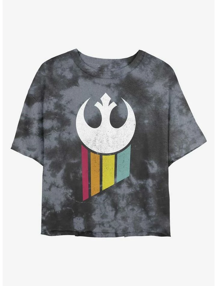 Outlet 🔥 Star Wars Rainbow Rebel Logo Tie-Dye 👧 Girls Crop T-Shirt 😍