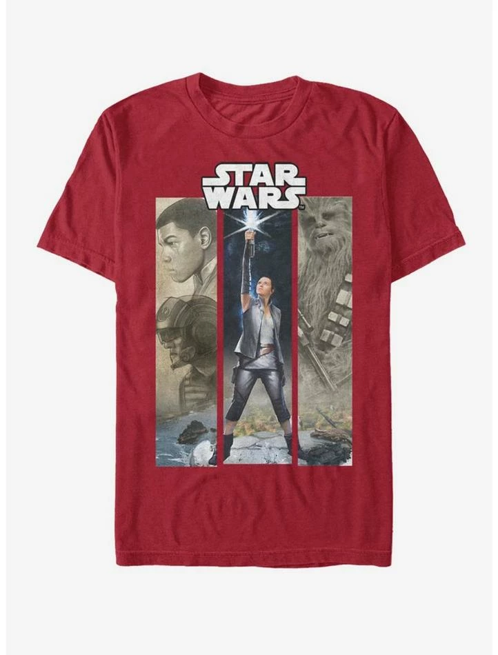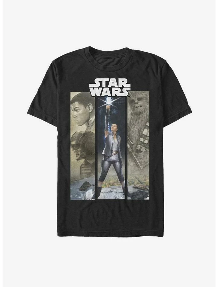 They’re an unlikely team but this group of rebels is ready to save the galaxy with the power of the Star Wars The Last Jedi Rebel Panels Black T-Shirt! Rey is center stage on this classic black Episode 8 shirt that shows off Poe, Finn, and Chewie in detailed print across the front. 100% Cotton.