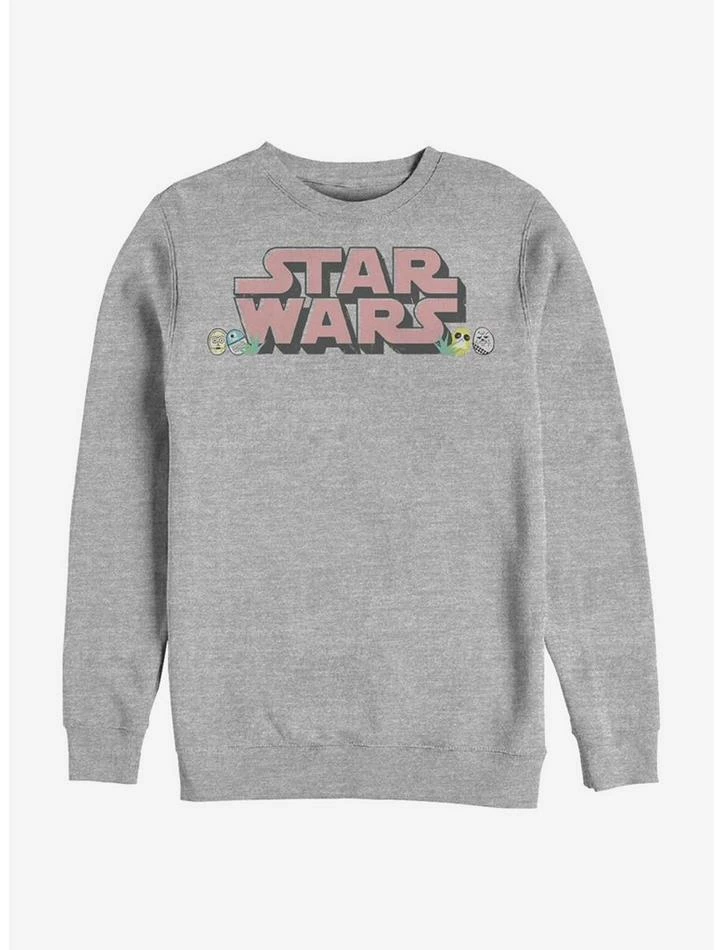 This crew is totally all it’s cracked up to be. Our heather grey sweatshirt has a classic Star Wars logo flanked by four familiar-looking Easter eggs. Hey, those eggs look like C-3PO, R2-D2, a Porg, and Chewbacca!