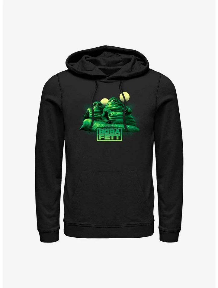 This black pullover hoodie — inspired by the Disney+ series Star Wars: The Book of Boba Fett — features Jabba’s cousins: The Hutt Twins!