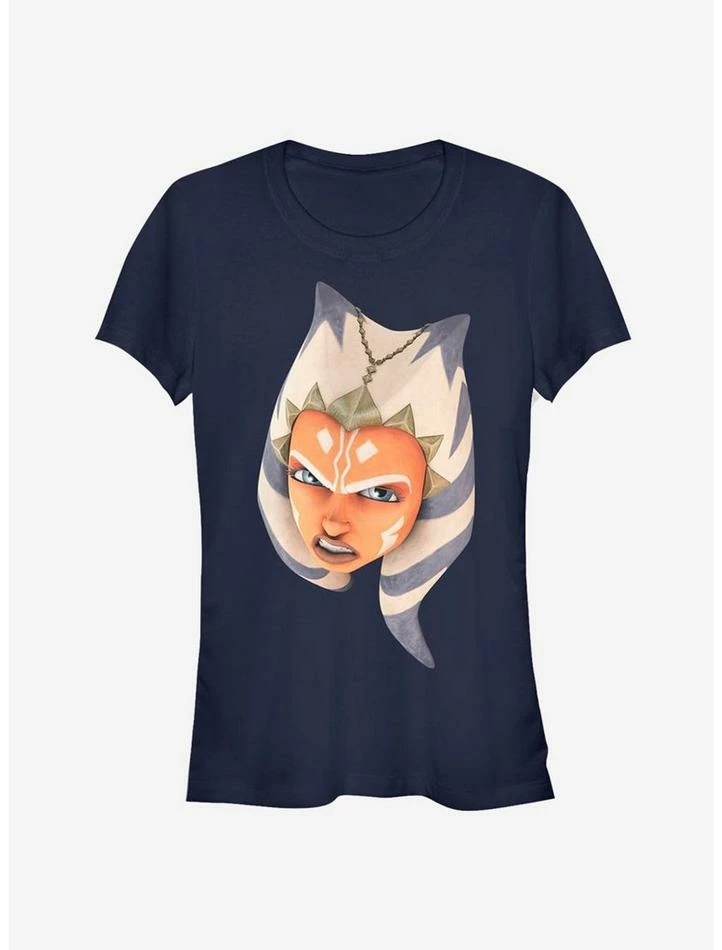 This fitted navy blue tee features the face of fan-favorite Star Wars character Ahsoka Tano.