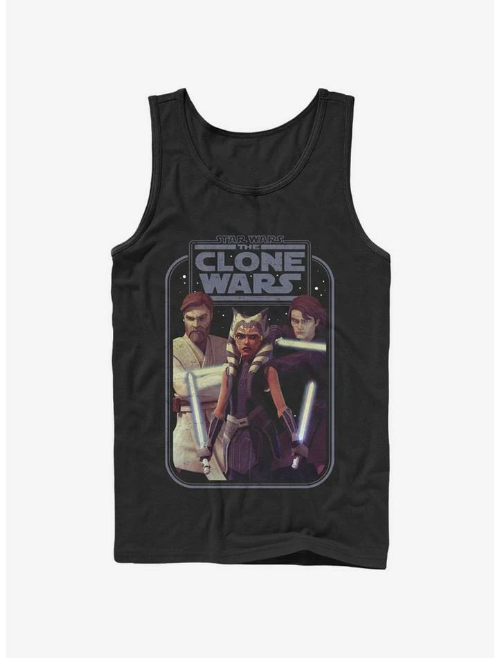 Name a more iconic trio… we’ll wait. This black tank from the animated series Star Wars: The Clone Wars features Obi-Wan Kenobi, Anakin Skywalker and Ahsoka Tano.
