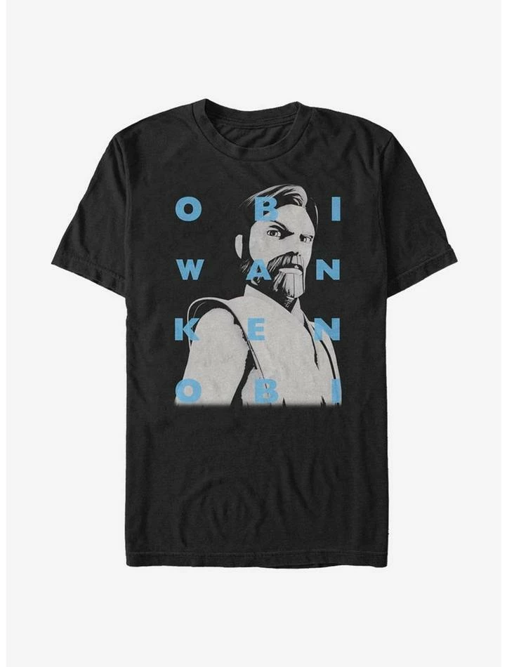 This lightweight black graphic tee features General Obi-Wan Kenobi, as seen in the animated series Star Wars: The Clone Wars, with his name in in block lettering.