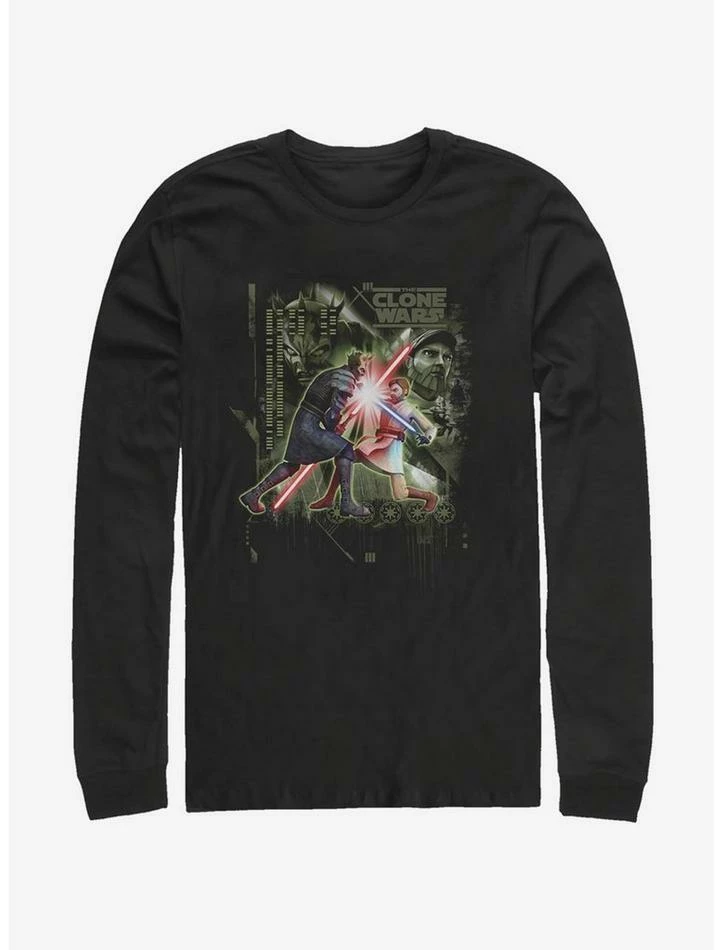 Who doesn’t love an epic lightsaber battle? This black long-sleeved tee — inspired by Star Wars: The Clone Wars — features Maul’s brother, Savage Opress, battling Obi-Wan Kenobi.
