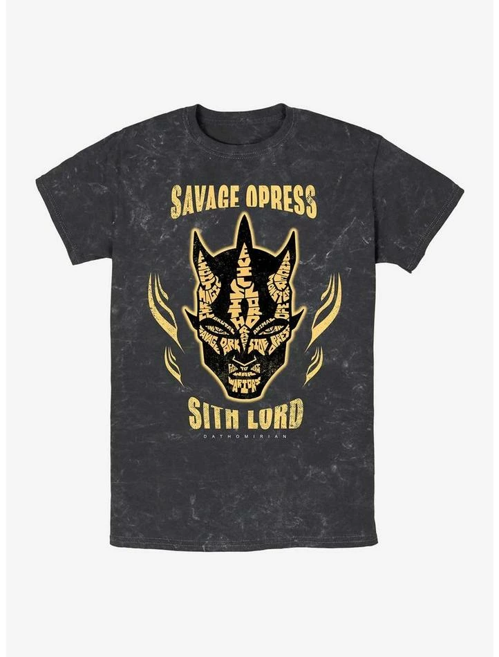 Maul’s brother. Formidable Sith warrior. This black mineral washed tee — inspired by Star Wars: The Clone Wars — features Savage Opress with verbiage-accented face.