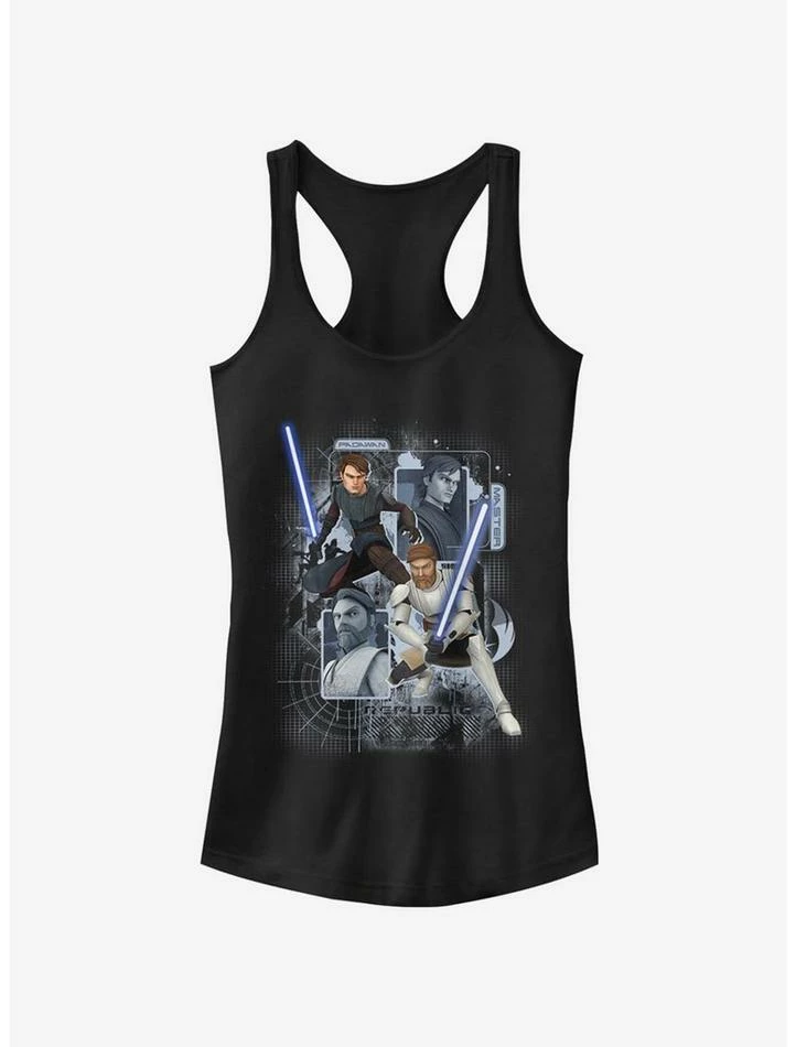 For every Padawan, there’s a Master — for every Master, a Padawan. This black racerback tank features perhaps the most iconic in the Star Wars universe: Anakin Skywalker and Obi-Wan Kenobi.